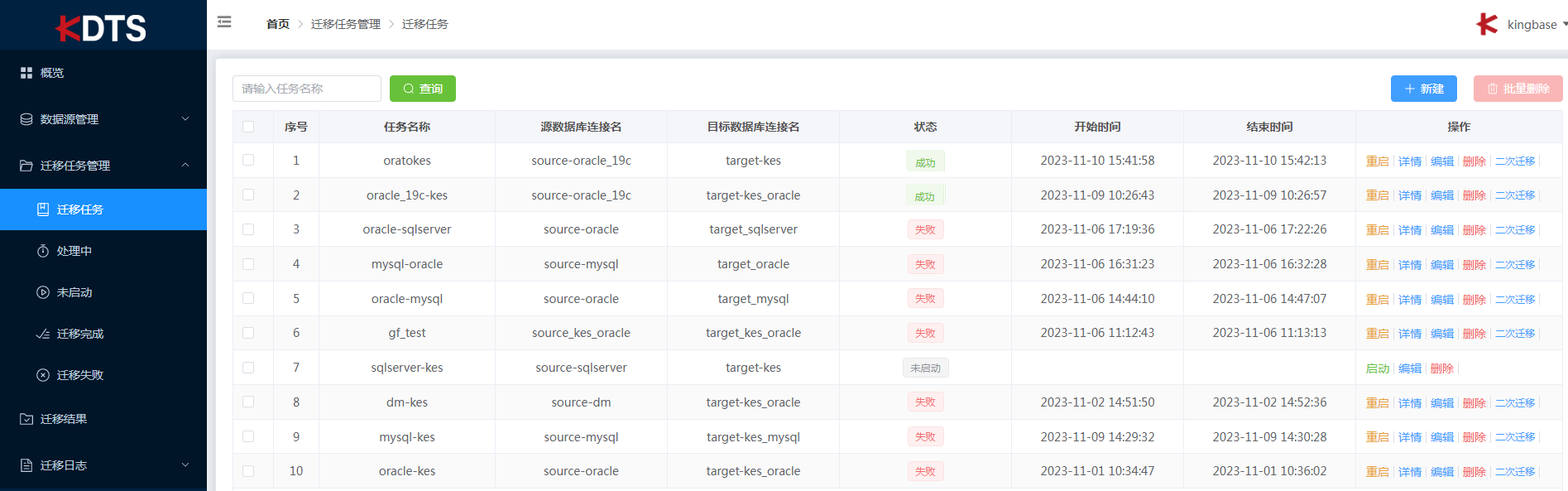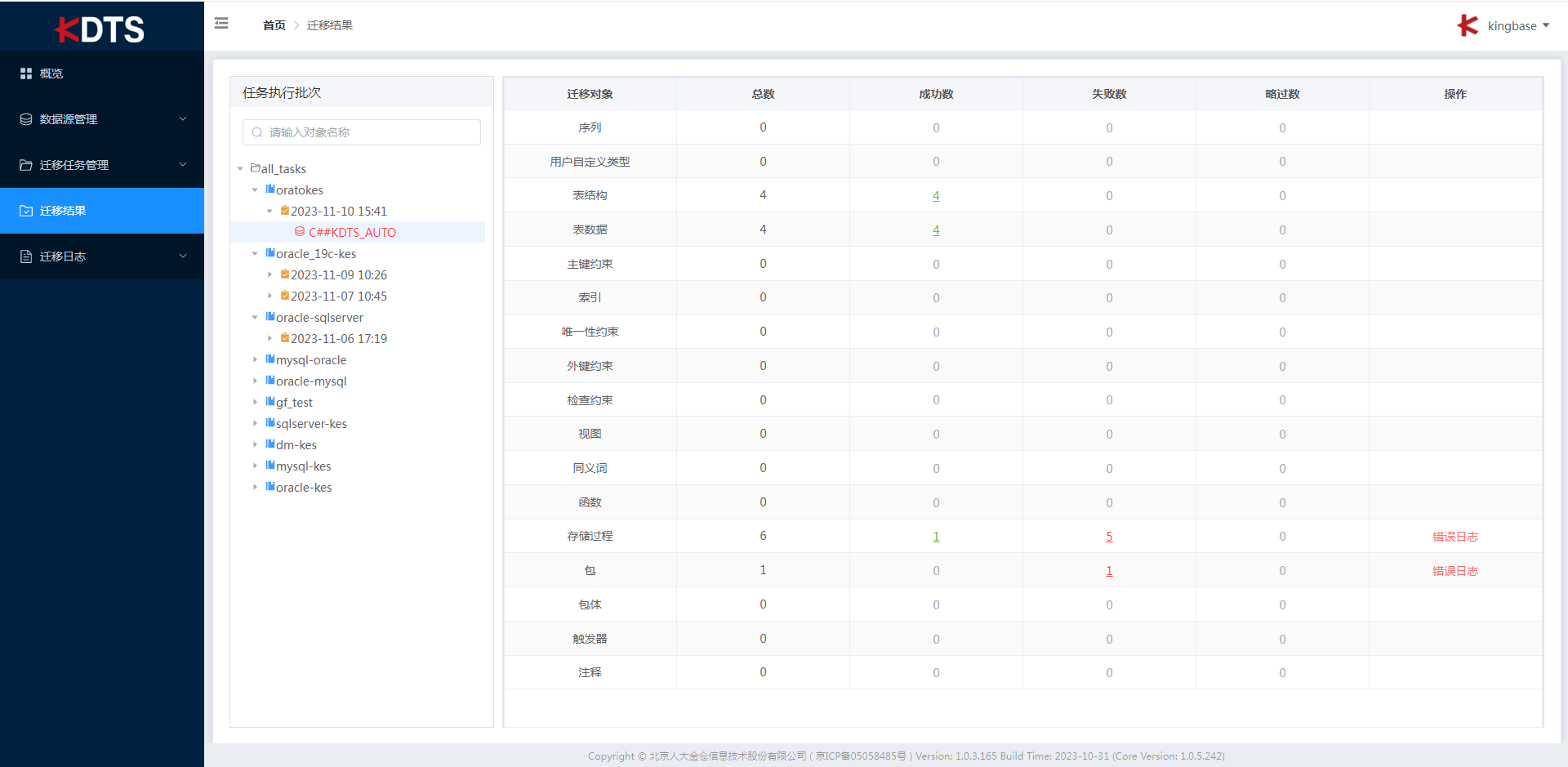 ,可以在运行日志(kdts_plus_***.log)中查看到迁移整个过程的信息,包括任务启动、迁移进程、结果汇总。
