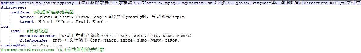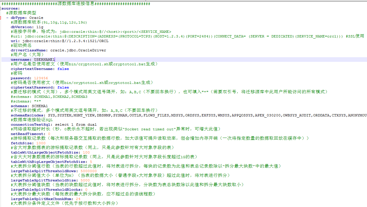 编辑conf/datasource-oracle.yml文件有多个配置参数,可灵活使用。以下列举常用的配置参数。