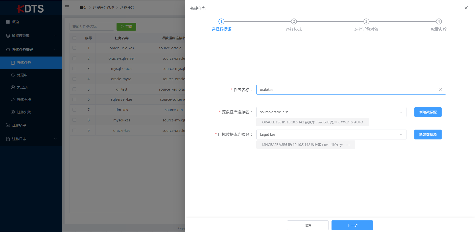- 先将存量数据迁移至中间数据库上,然后KDTS迁移工具进行初始数据搬迁或通过ETL进行初始数据搬迁至异构数据库(目标数据库)中。