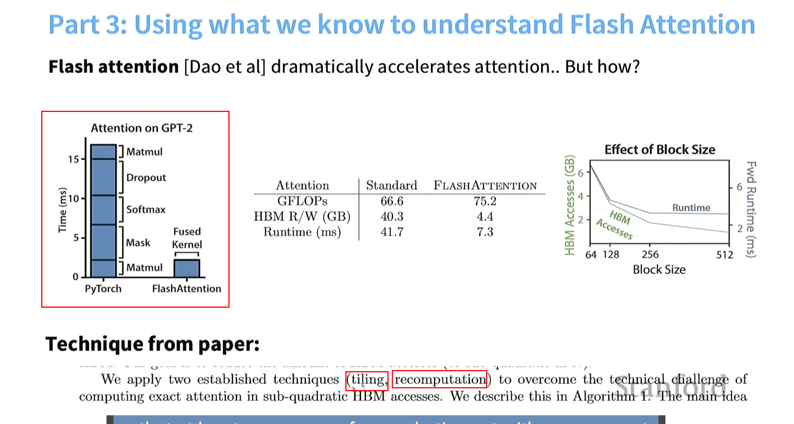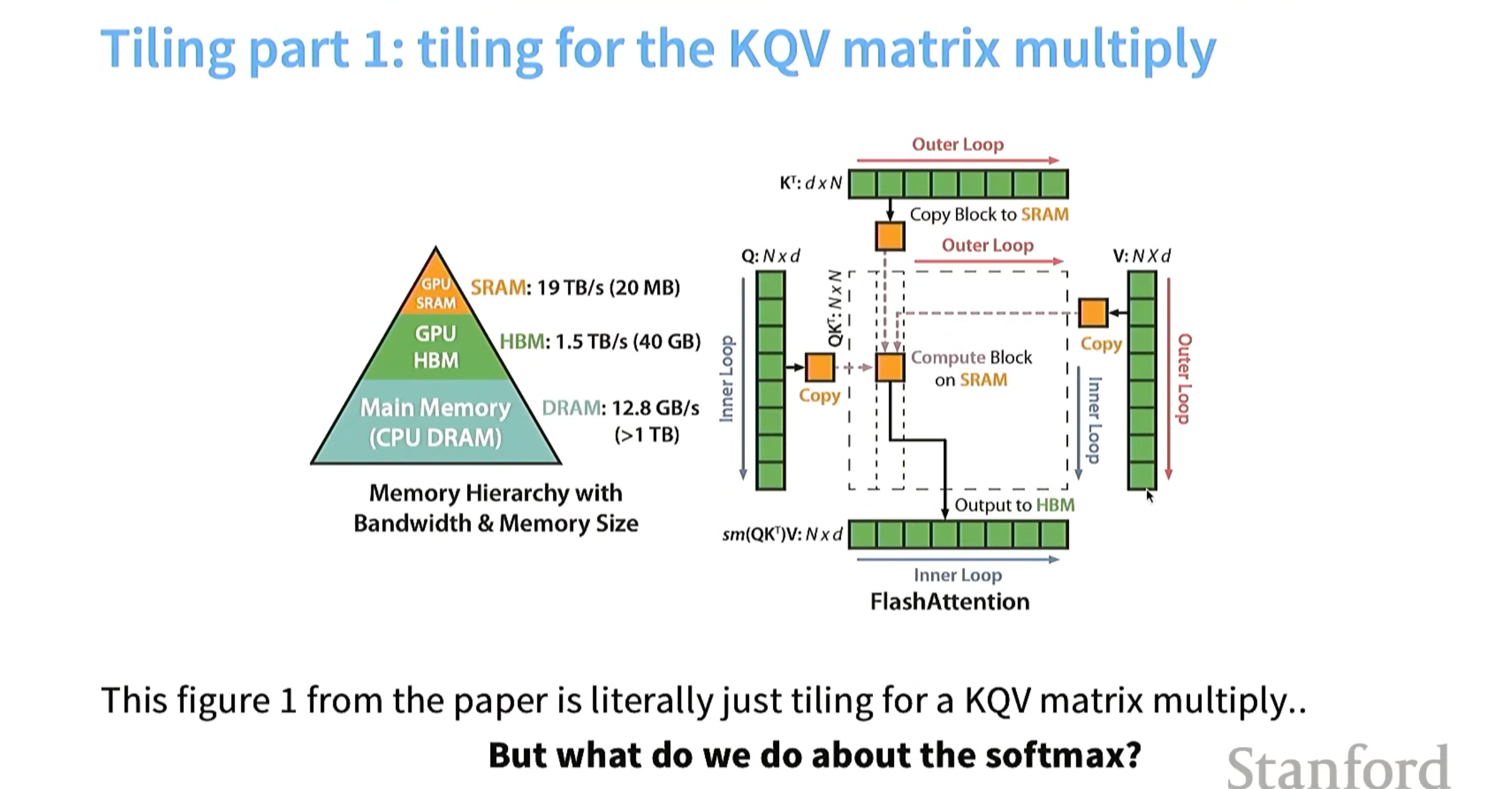 一句话:用了分块(tiling)和recomputation,用算子融合(fusion)进行了在线softmax计算。