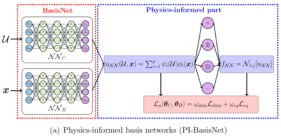 构建含PI-BasisNet与PI-GeM的双模块架构,前者学习基函数与系数,后者学习系数分布,通过内积生成新样本,适配高维场景。