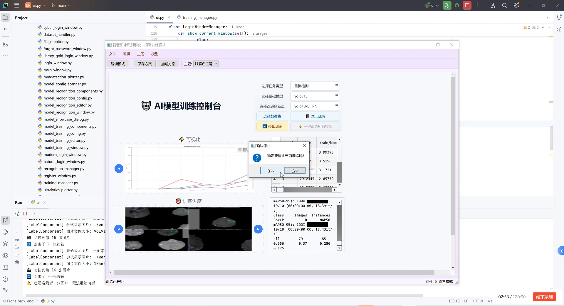 为了直观展示模型训练过程,我们记录了训练过程中的损失曲线和mAP(平均精度均值)变化曲线。从损失曲线可以看出,模型在训练初期快速收敛,损失值迅速下降;在训练中期,损失下降速度减缓,模型逐渐稳定;在训练后期,损失值趋于平稳,表明模型已充分学习数据特征。