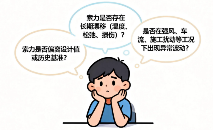 2.索力是否存在长期漂移(温度、松弛、损伤)?