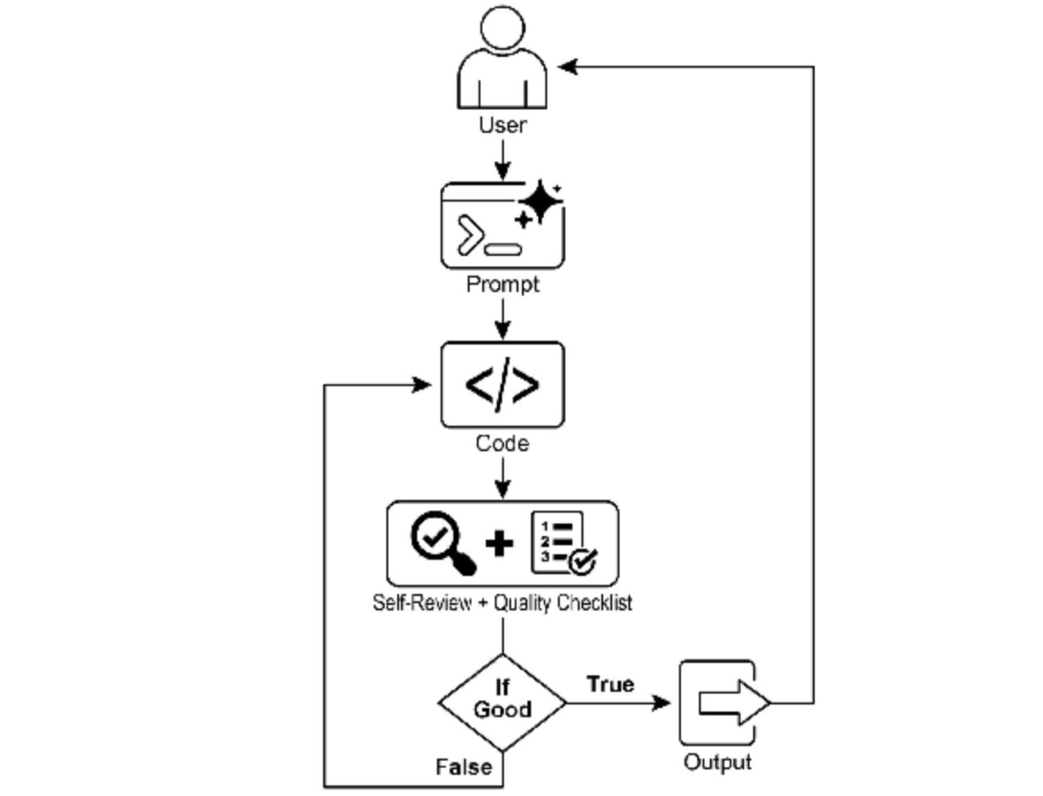 有这样的一个任务,AI 程序员开始工作并产生其第一个代码草稿。然而,它没有立即提交这个初始版本,而是暂停执行一个关键步骤:严格的自我审查。它仔细地将自己的创作与你提供的质量检查清单上的每一项进行比 较,充当自己的质量保证检查员。在这次检查之后,它对自己的进度做出一个简单、无偏见的判断:"True" 如果工作满足所有标准,或"False"如果它不满足标准。