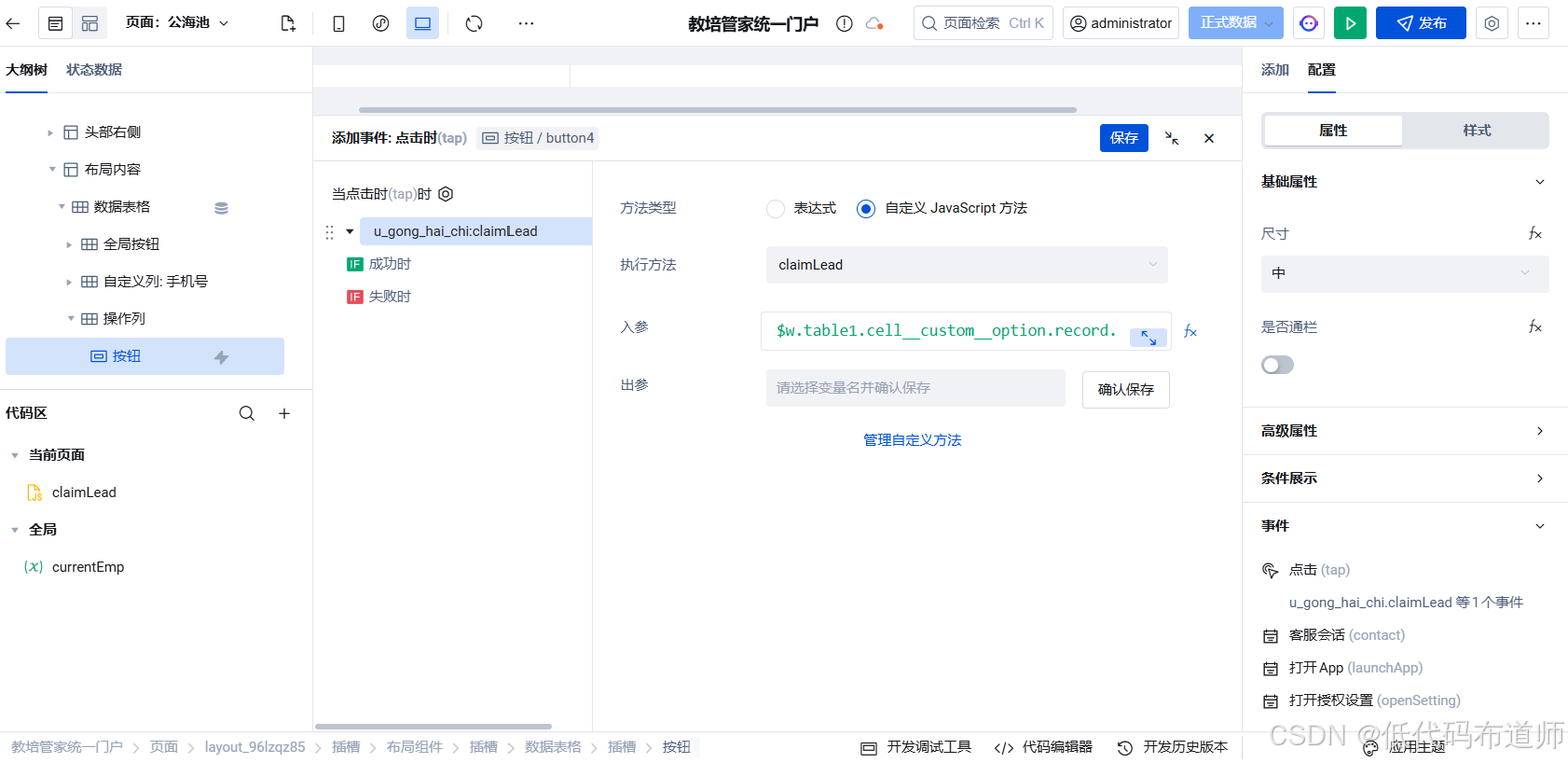 回到公海池页面,给"抢单"按钮绑定点击事件: