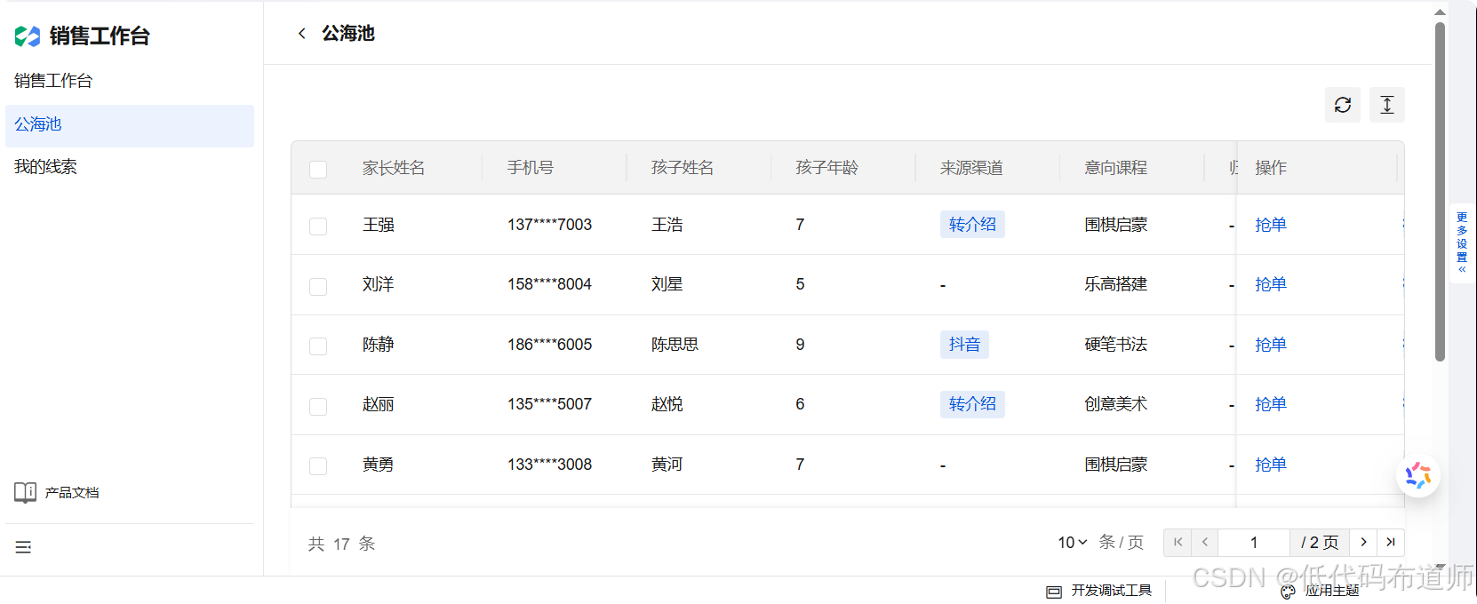 公海池的线索应该适度脱敏。我们可以在表格列配置中,把"手机号"列去掉,或者用表达式隐藏中间四位,防止销售私下联系却不录入系统。