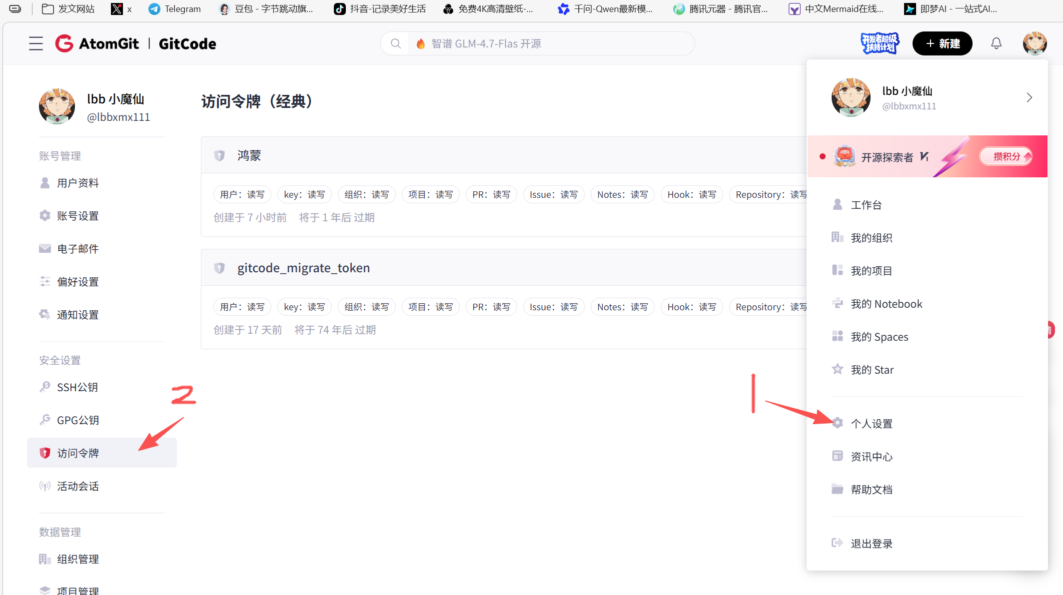 - Git 免密推送:配置 SSH 密钥(AtomGit 官网有详细教程),后续推送无需重复输入账号密码(可以试试,但是AtomGit输入上访问令牌之后也不会二次输入)