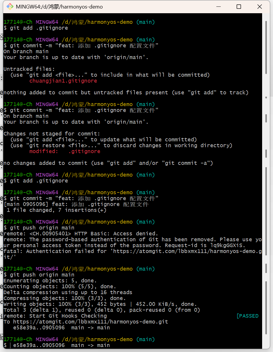 以上就是鸿蒙跨平台开发 DAY 2 任务的完整流程!🎉 从工具安装到代码提交,每一步都有详细说明和避坑提示,新手也能轻松上手。如果操作中遇到问题,欢迎在评论区留言交流,后续会持续更新鸿蒙开发系列内容,记得点赞收藏哦~