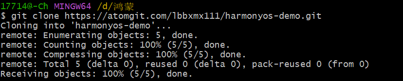 https://atomgit.com/你的用户名/harmonyos-demo.git) - 本地选择一个空文件夹(C、D盘都可以),右键 →「Git Bash Here」