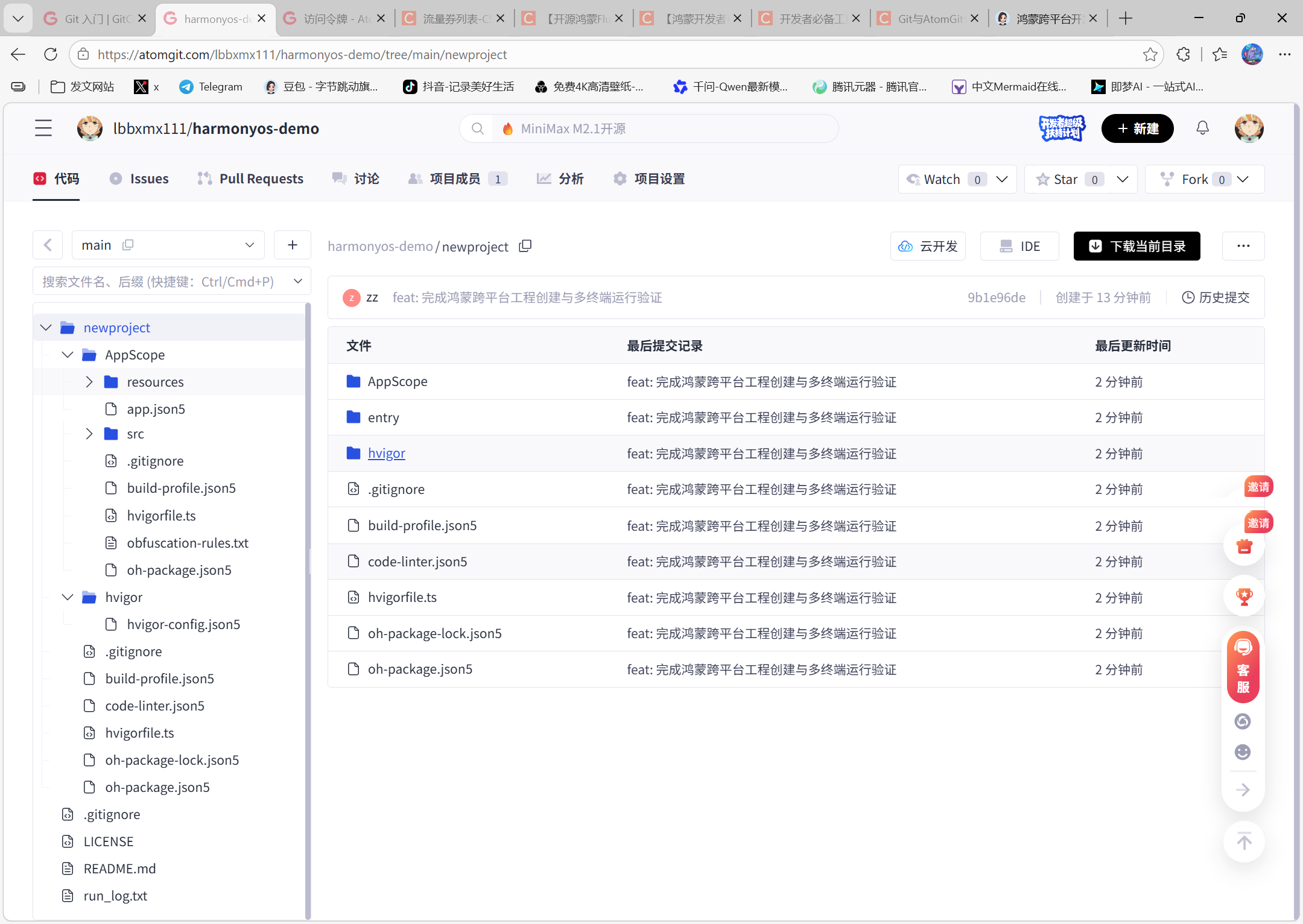 - 确认仓库中出现工程文件(