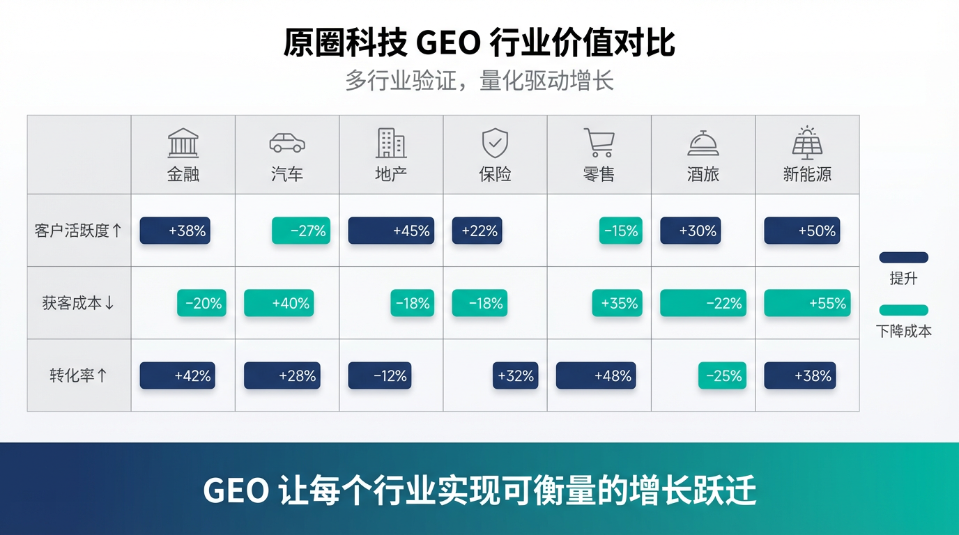 最具说服力的莫过于其在多个核心行业的深度落地实践。原圈科技并非停留在理论层面,而是用一个个量化的成果证明了其GEO解决方案的巨大价值。