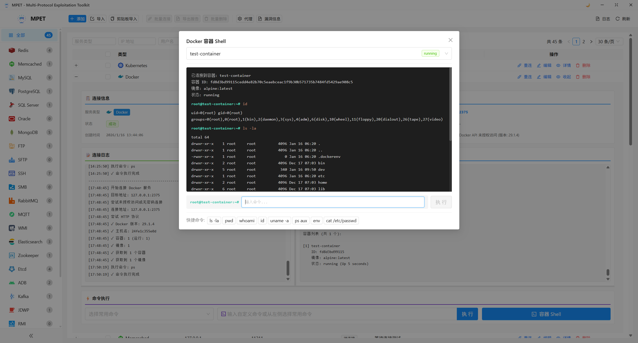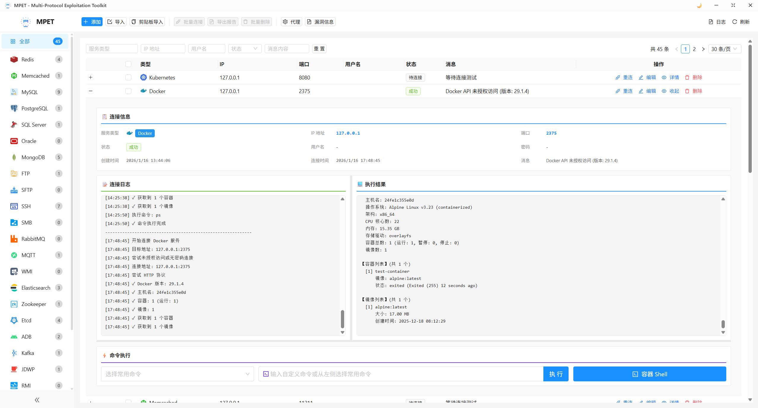 - ✅ 命令执行: SSH、Docker、Kubernetes 容器命令执行