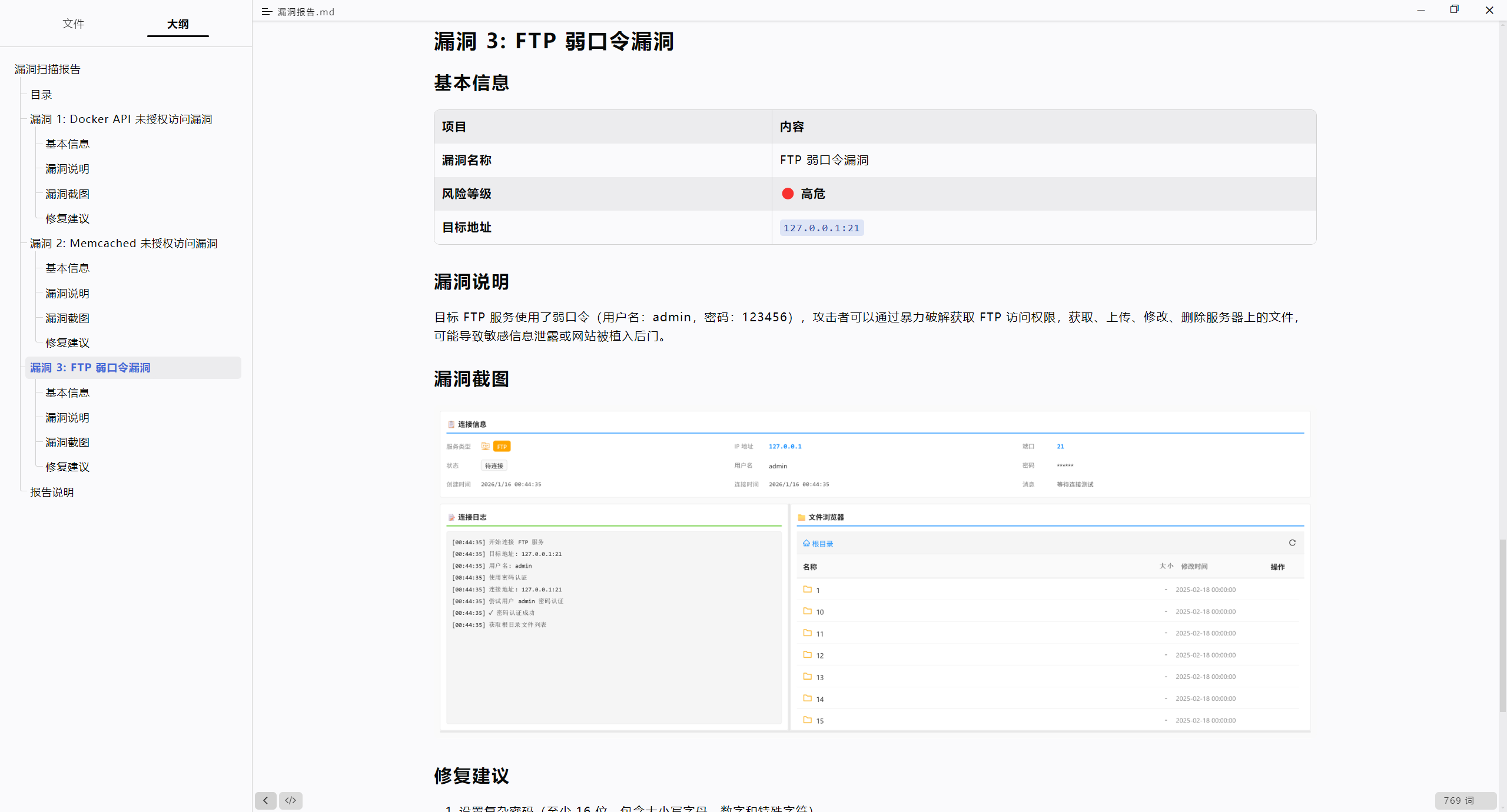 | FTP | 21 | 未授权访问、弱口令 | 文件浏览、下载 |