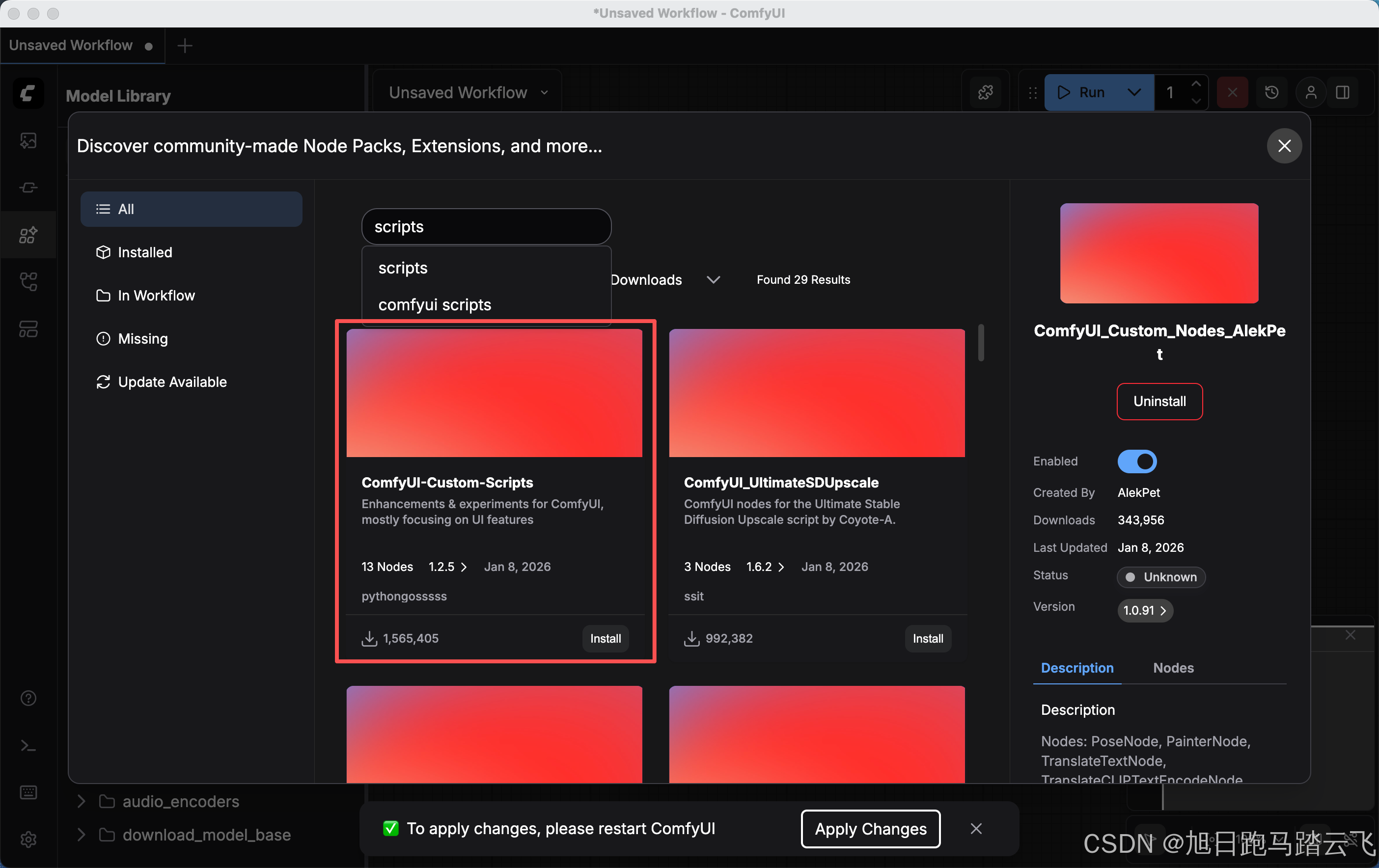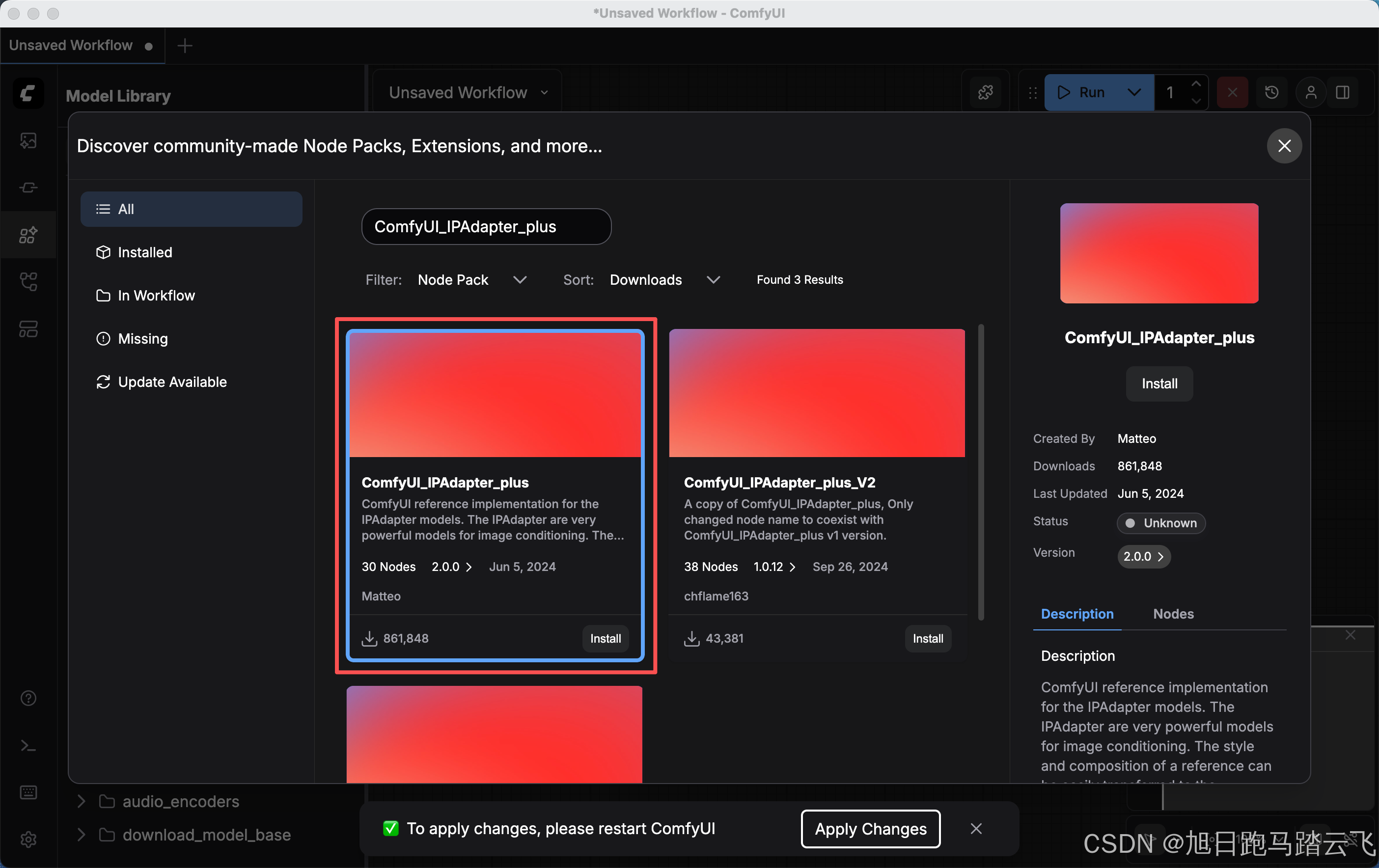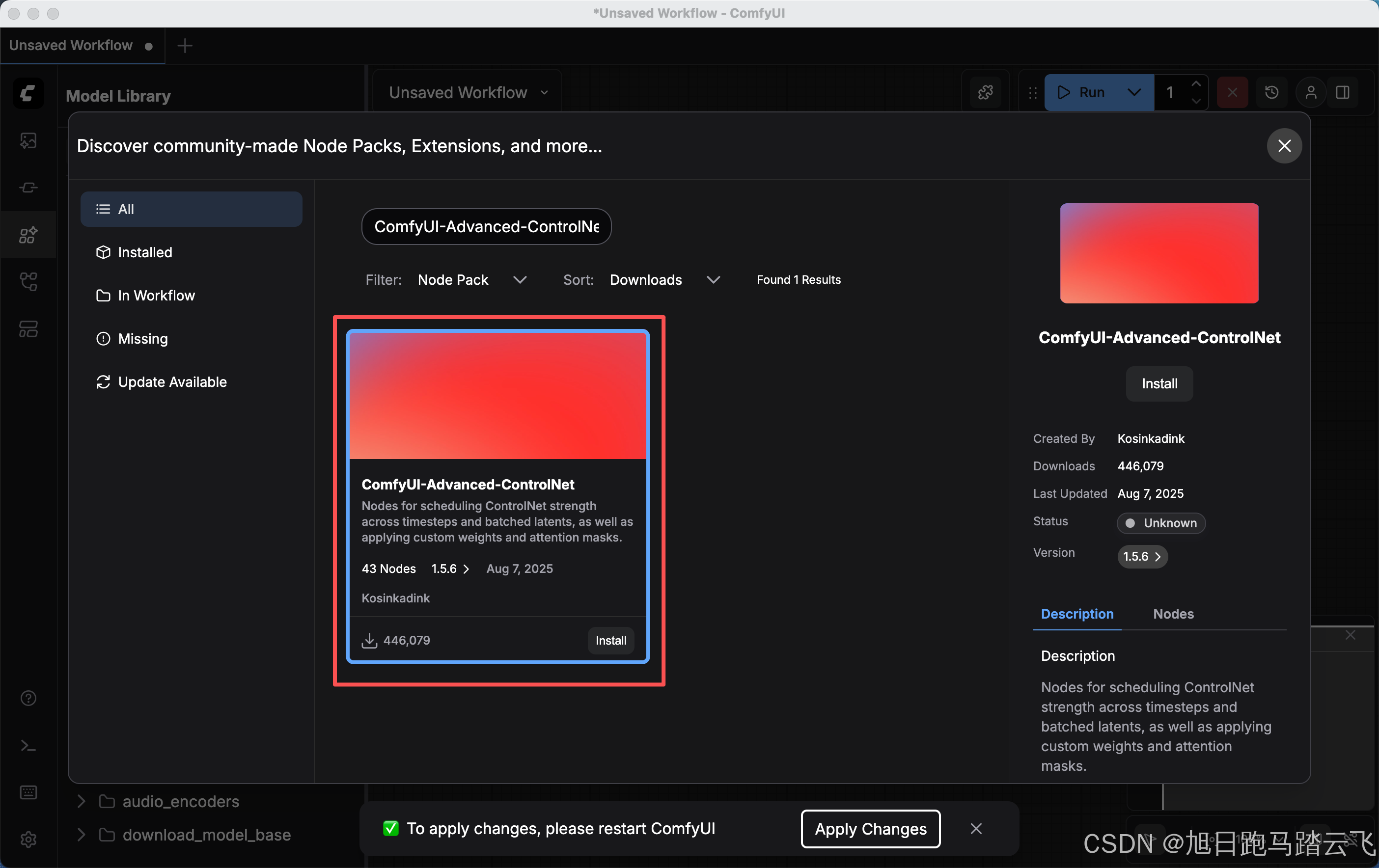 安装完后重启ComfyUI。