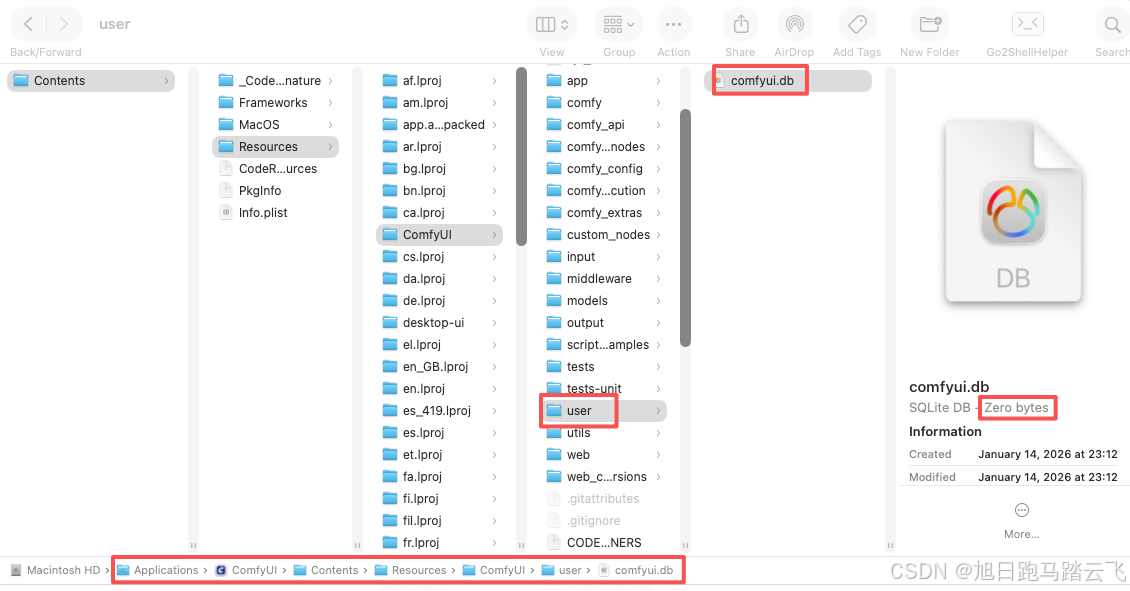 这个目前无解(版本0.7.2),提示不影响运行,如果不想看到这个提示,可以在 /Application/ComfyUI/Contents/Resources/ComfyUI下新建 user 目录,然后重新启动,会在新建的 user 目录下生成一个空的 comfyui.db。