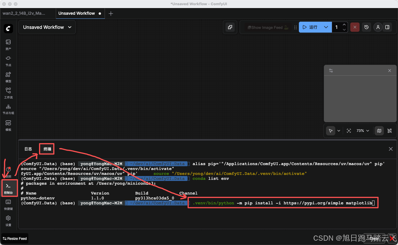 bash$ conda activate comfyui $ pip install matplotlib2、如果是安装的桌面版,在桌面版的命令行中执行: