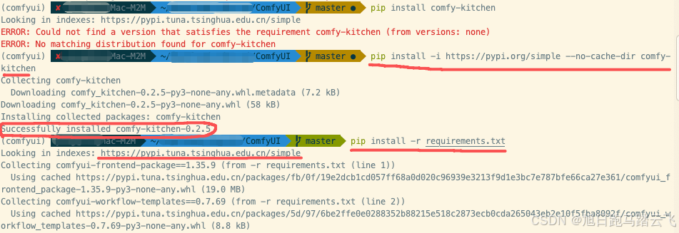 1、如果是手动安装,先**$ conda activate comfyui**激活环境,然后执行上面安装: