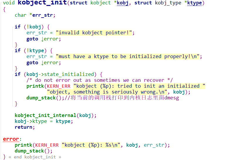 对kobject做了一些检查,然后给其内部的一些变量进行了缺省配置