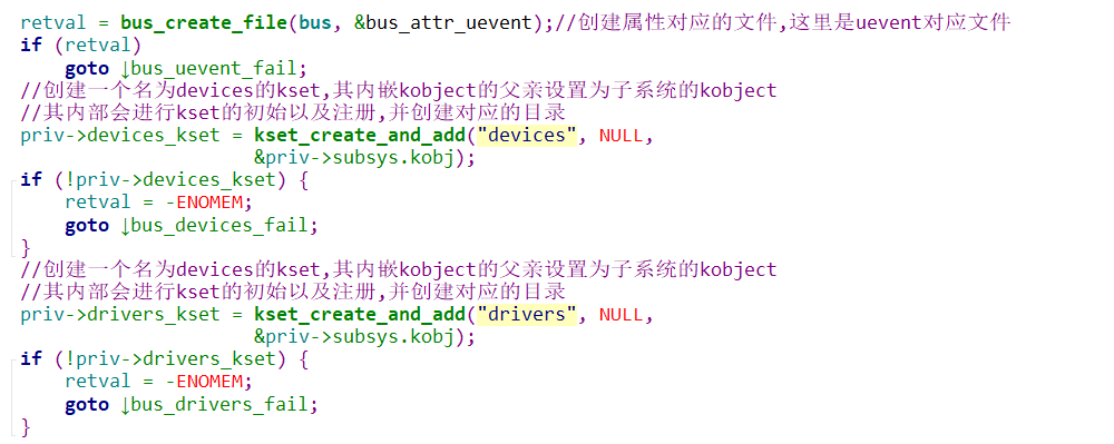 这里创建了devices和drivers对应的kset,该kset的内嵌kobj的parent当然就会是当前subsys这个kset的内嵌kobj了