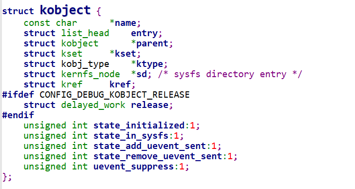 unsigned int state_initialized:1; // 是否已经完成初始化(kobject_init() 或 kobject_init_and_add())