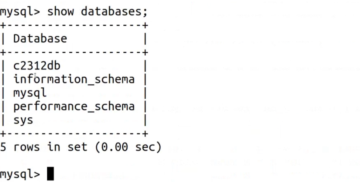 show databases;执行后会列出当前 MySQL 中的所有数据库,例如