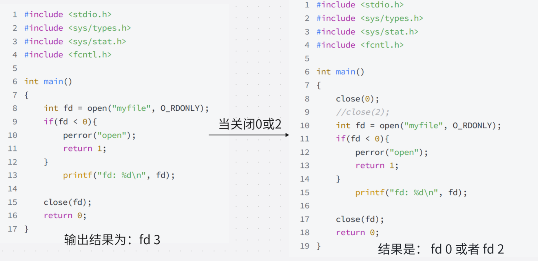 fd:文件描述符(非负整数),标识打开的文件 / 设备 /socket。常见值:0:标准输入(STDIN_FILENO)1:标准输出(STDOUT_FILENO)2:标准错误(STDERR_FILENO)- 其他值由