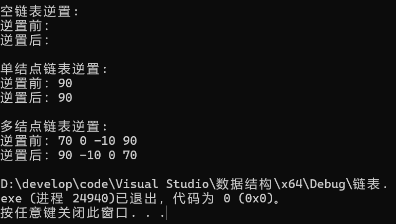 //退出循环,实现逆置