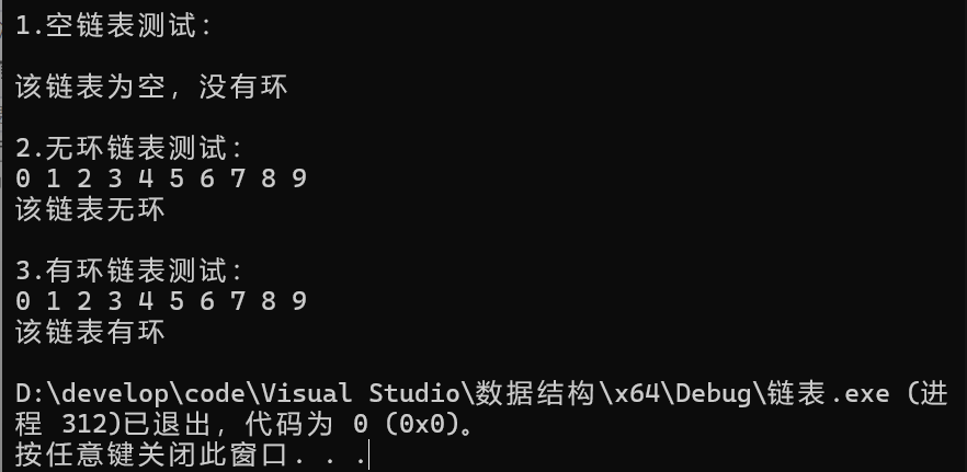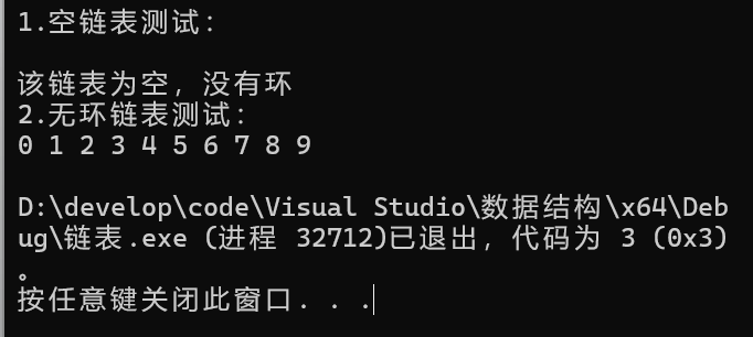 printf("2.无环链表测试:\n");