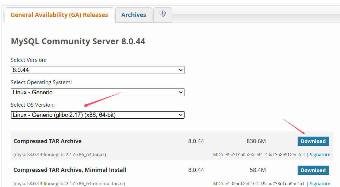 tar -xvf mysql-8.0.44-linux-glibc2.17-x86_64.tar.xz -C /usr/local/