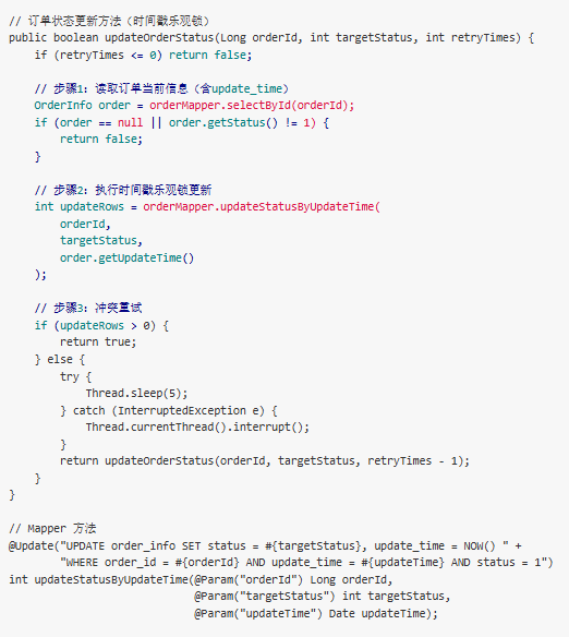 场景 2:订单状态更新(防并发修改)