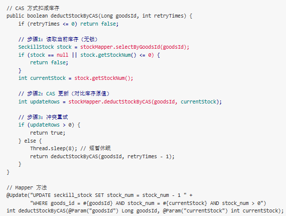 int updateRows = stockMapper.deductStockByVersion(