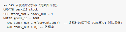 @Update("UPDATE seckill_stock SET stock_num = stock_num - 1, version = version + 1 " +