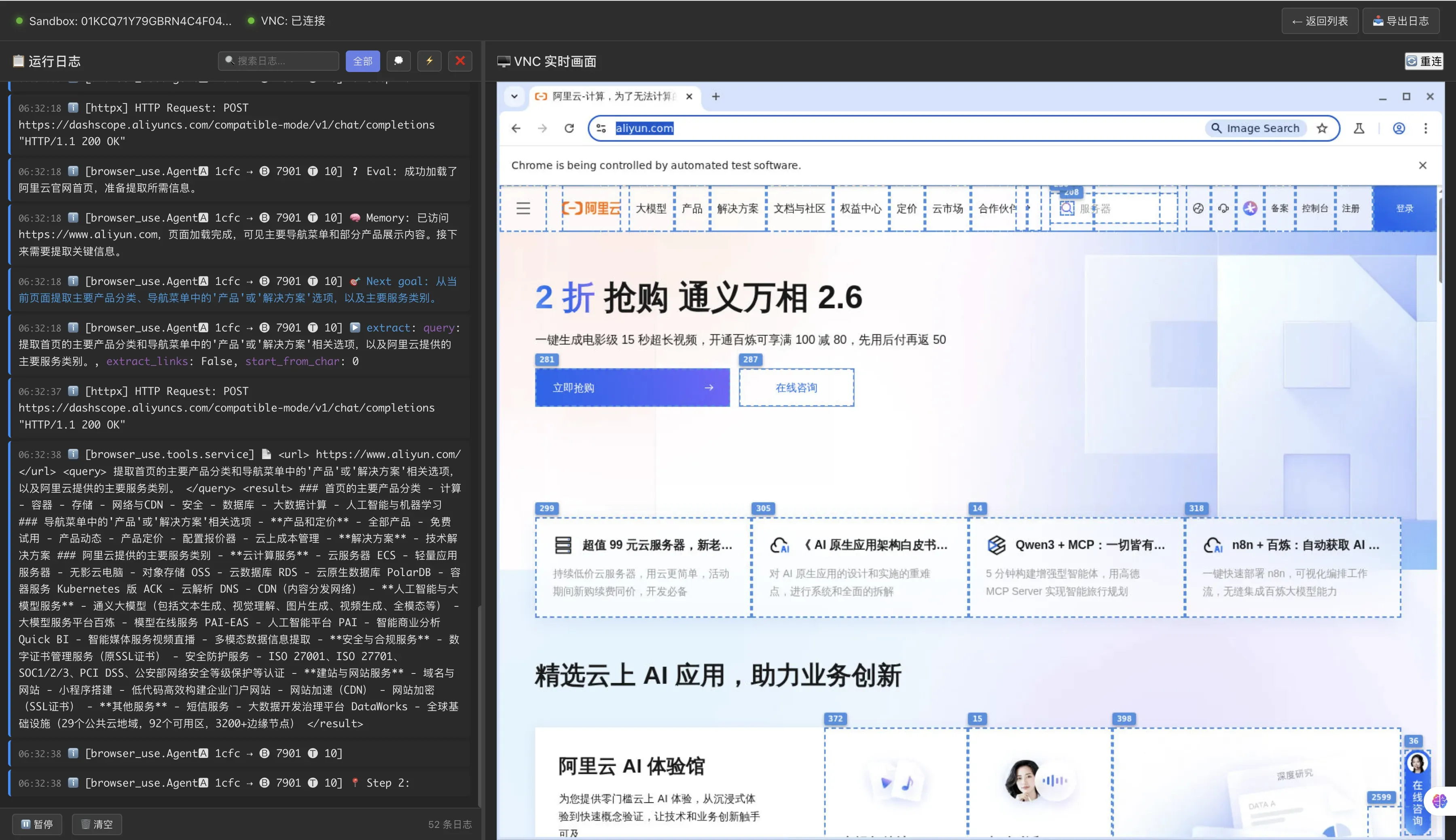 - 实时可视化:VNC 提供实时画面监控,方便调试和验证 Agent 行为