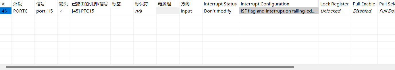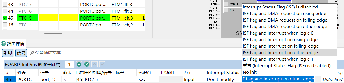 PINS_DRV_ClearPinIntFlagCmd(PORTC, 15U);//