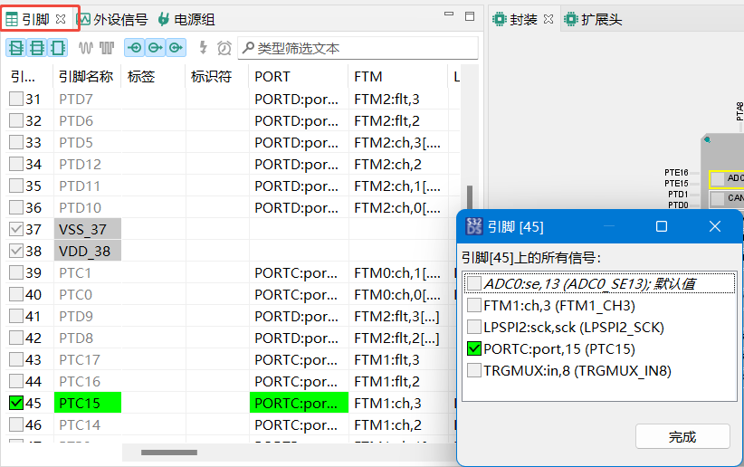 打开界面后在引脚窗口选择要配置的PIN脚,点击后选择GPIO功能,选择输入"Input",选择后在下方的路由详情会显示当前选择的所有pin脚和功能