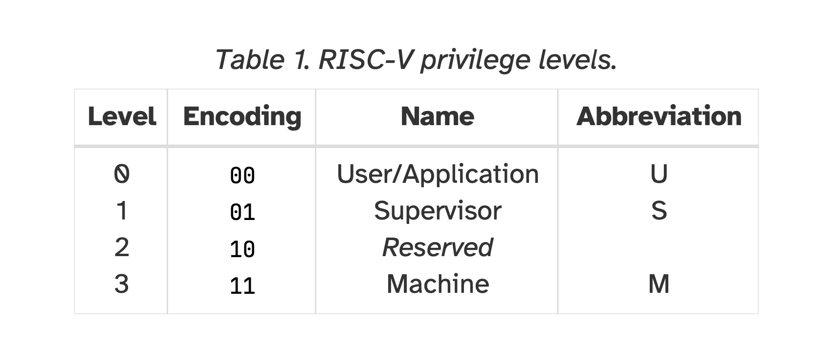 *表1. RISC-V特权级别。*