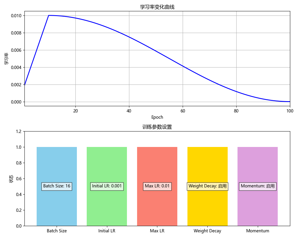 | 批次大小 | [8, 32] | 16 | 影响训练稳定性和内存使用 |