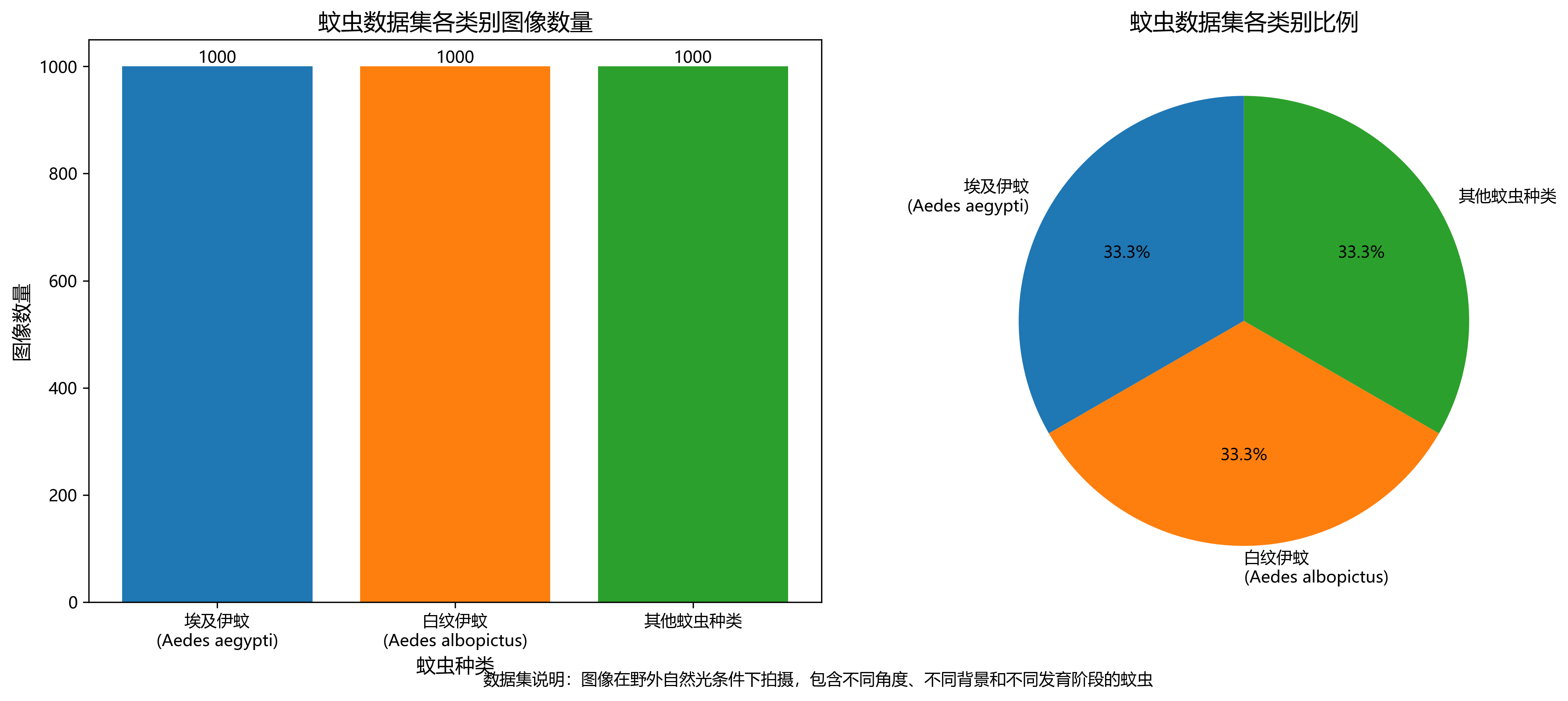| 白纹伊蚊 | 黑色身体,白色斑纹,腿部有白环 | 1,200 | 实地采集 |