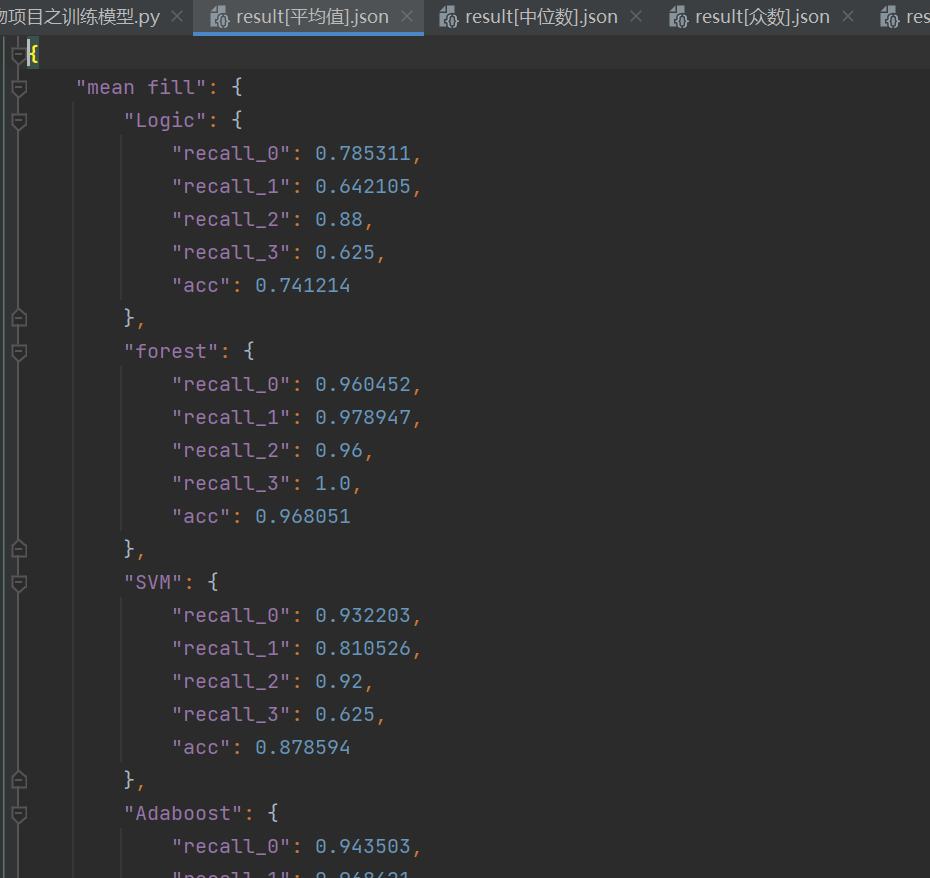 一、读取数据,这里result_all={}是用来存储最终结果的,每一种填充方法对应八种模型训练的结果
