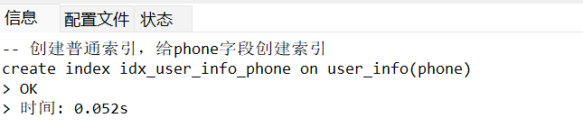 -- 创建普通索引:给phone字段创建索引(适合查询频繁的字段)