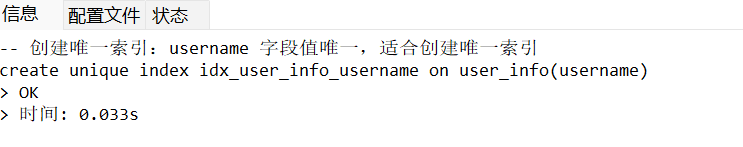 -- 创建唯一索引:username字段值唯一,适合创建唯一索引