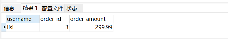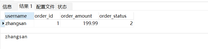 SELECT u.username, o.order_id, o.order_amount, o.order_status