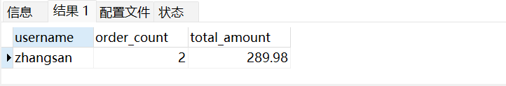 -- 示例2:分组统计 - 每个用户的订单统计(仅显示订单数>1的用户)