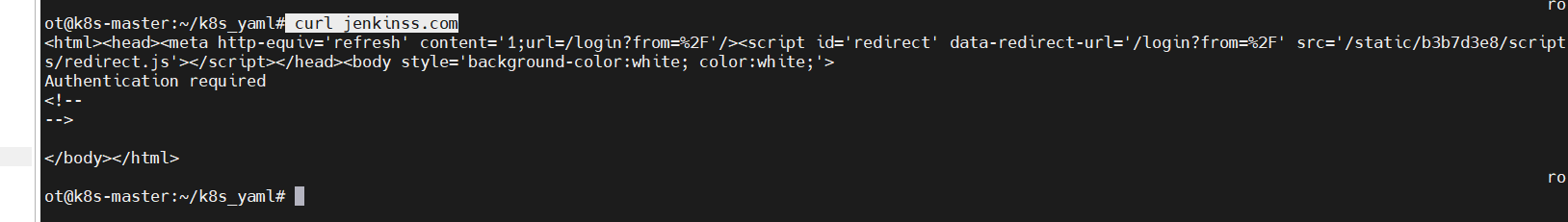 curl jenkinss.com 如下图这样就代表部署成功,后续用浏览器就能直接打开