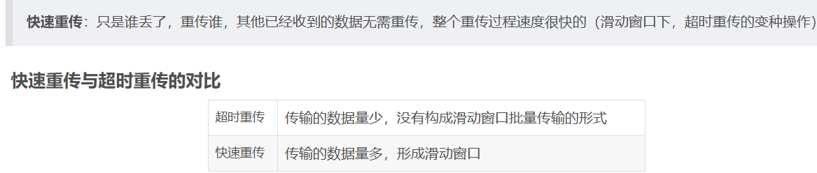 - 快速重传: 接收方收到比期望序号大的报文段到达时, 就会发送一个冗余ACK, 指明下一个期待的序列号,发送端接收到3个以上的重复ACK, TCP就意识到数据发生丢失,需要重传