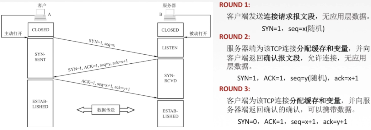 三次握手 (一定是客户端主动向服务器发出握手请求)