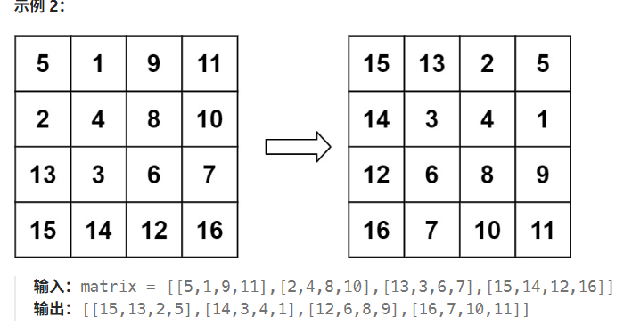 你必须在**原地** 旋转图像,这意味着你需要直接修改输入的二维矩阵。请不要 使用另一个矩阵来旋转图像。