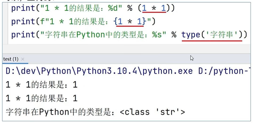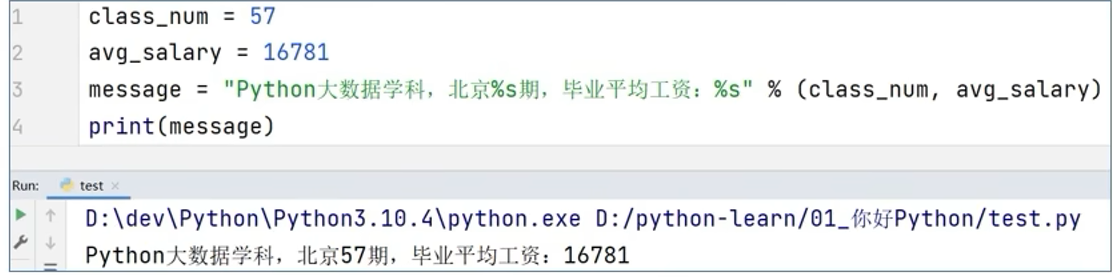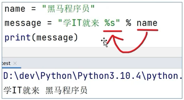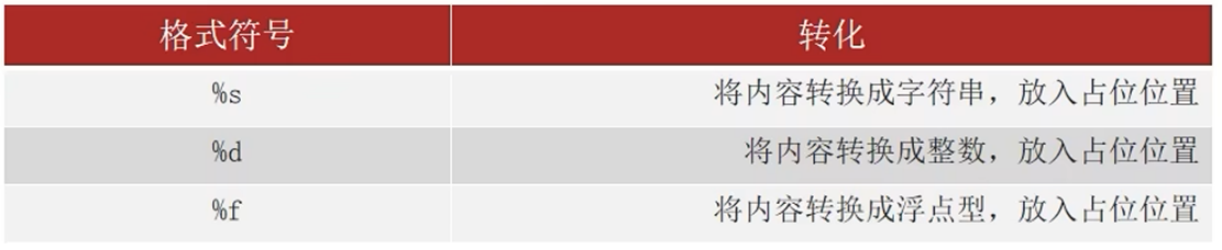 - 数字类型也可以用 %s 占位, 会把数字转成字符串进行拼接