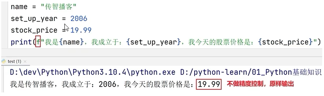 语法: f"内容{变量}" 的格式来快速格式化