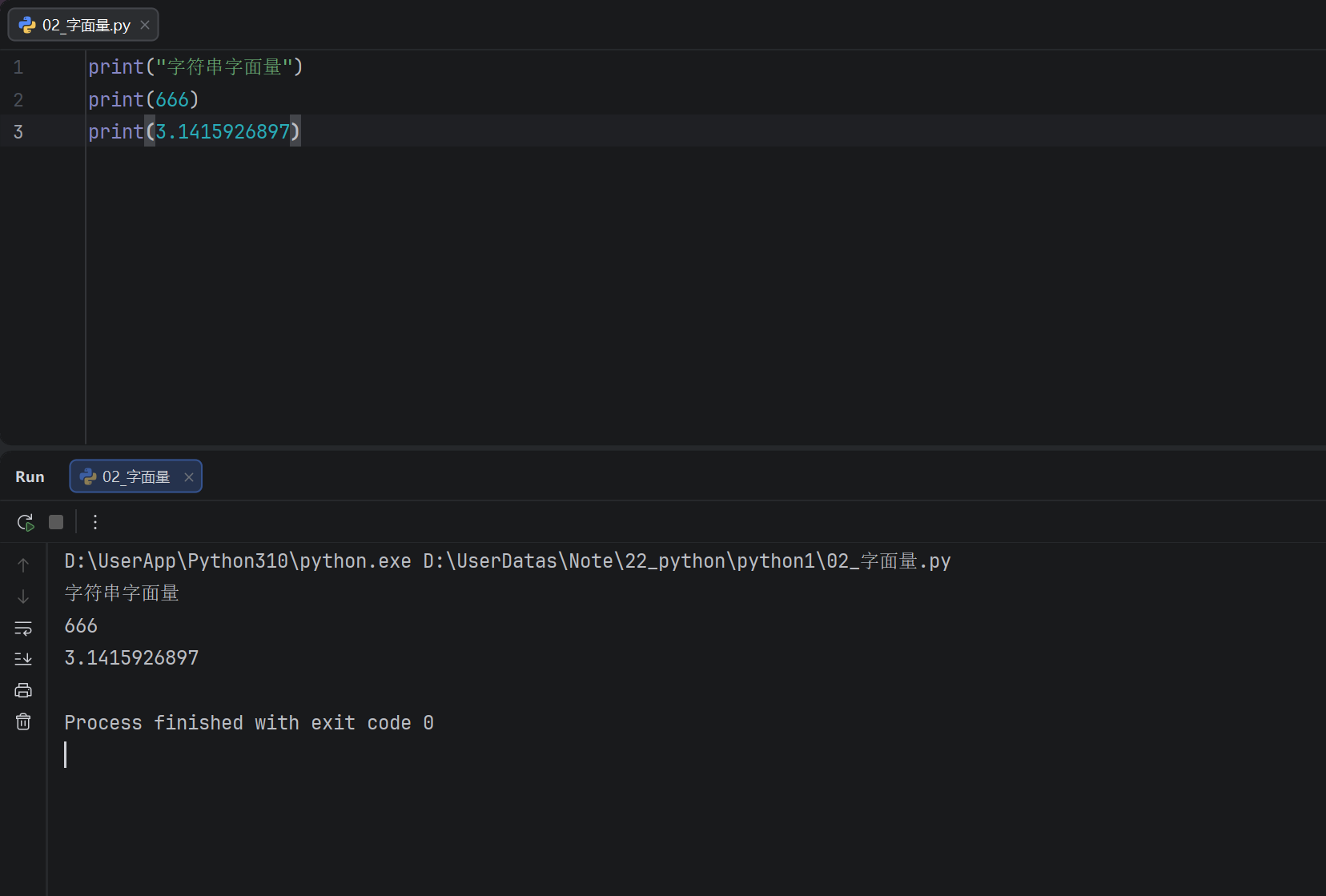 基于print语句完成各类字面量的输出